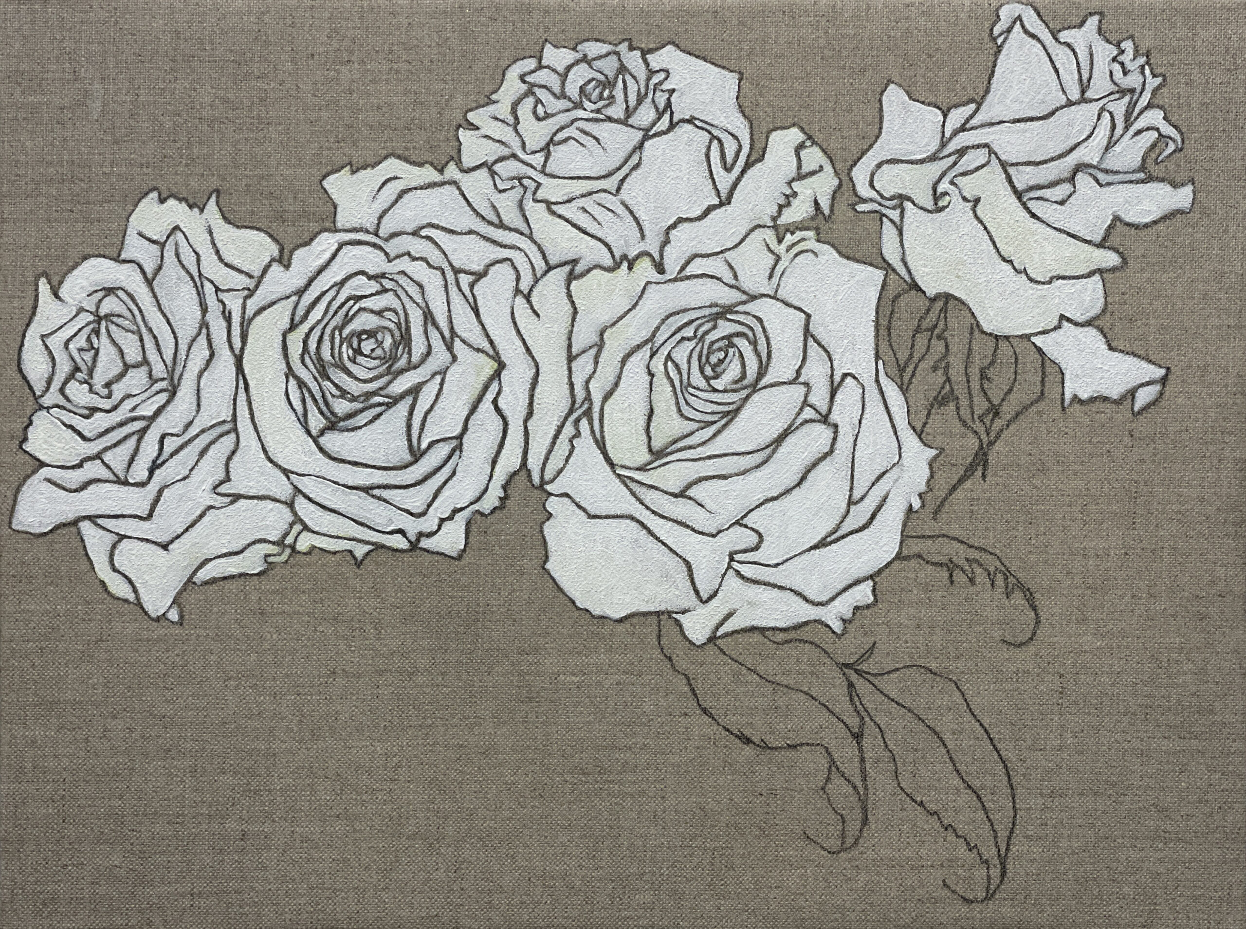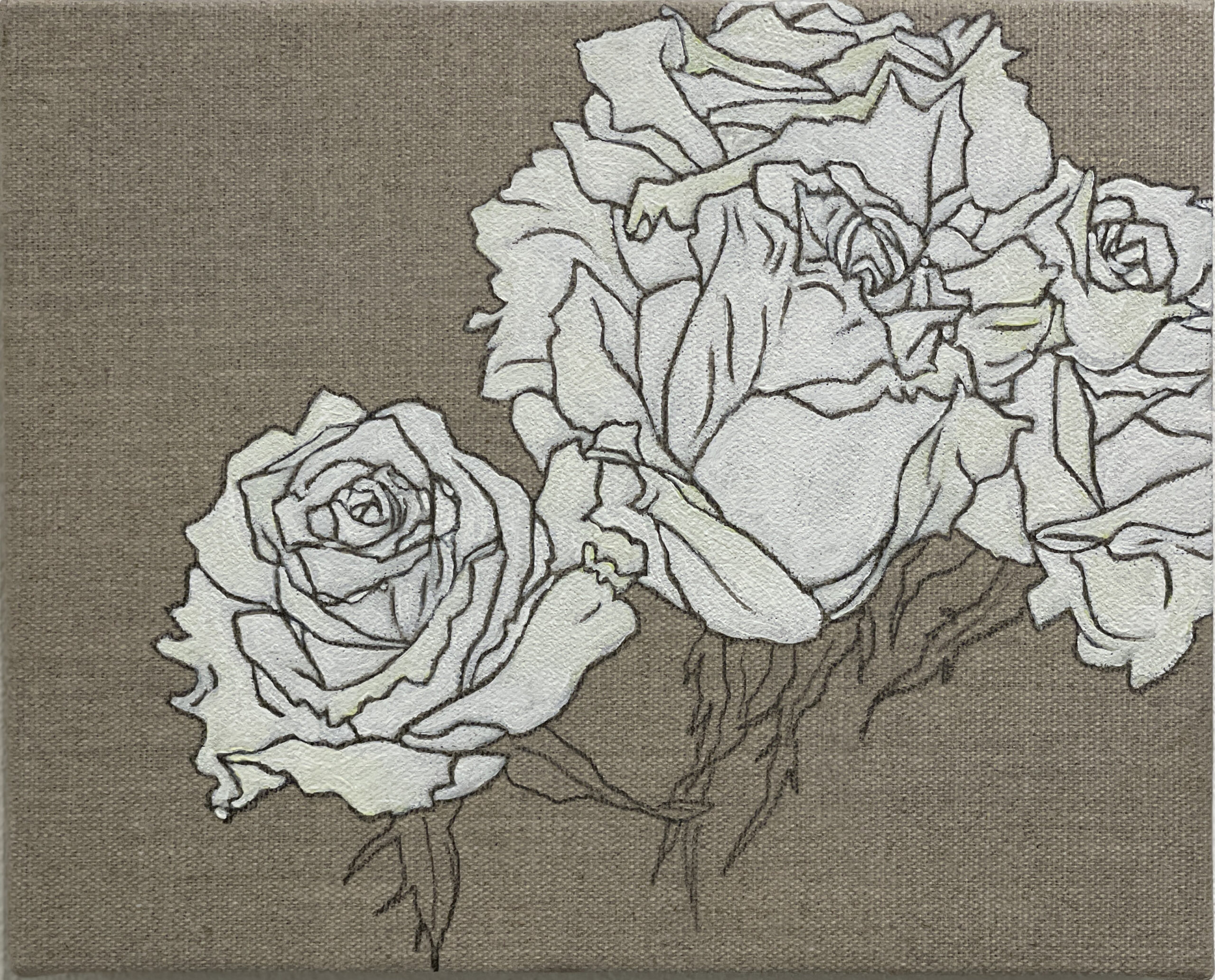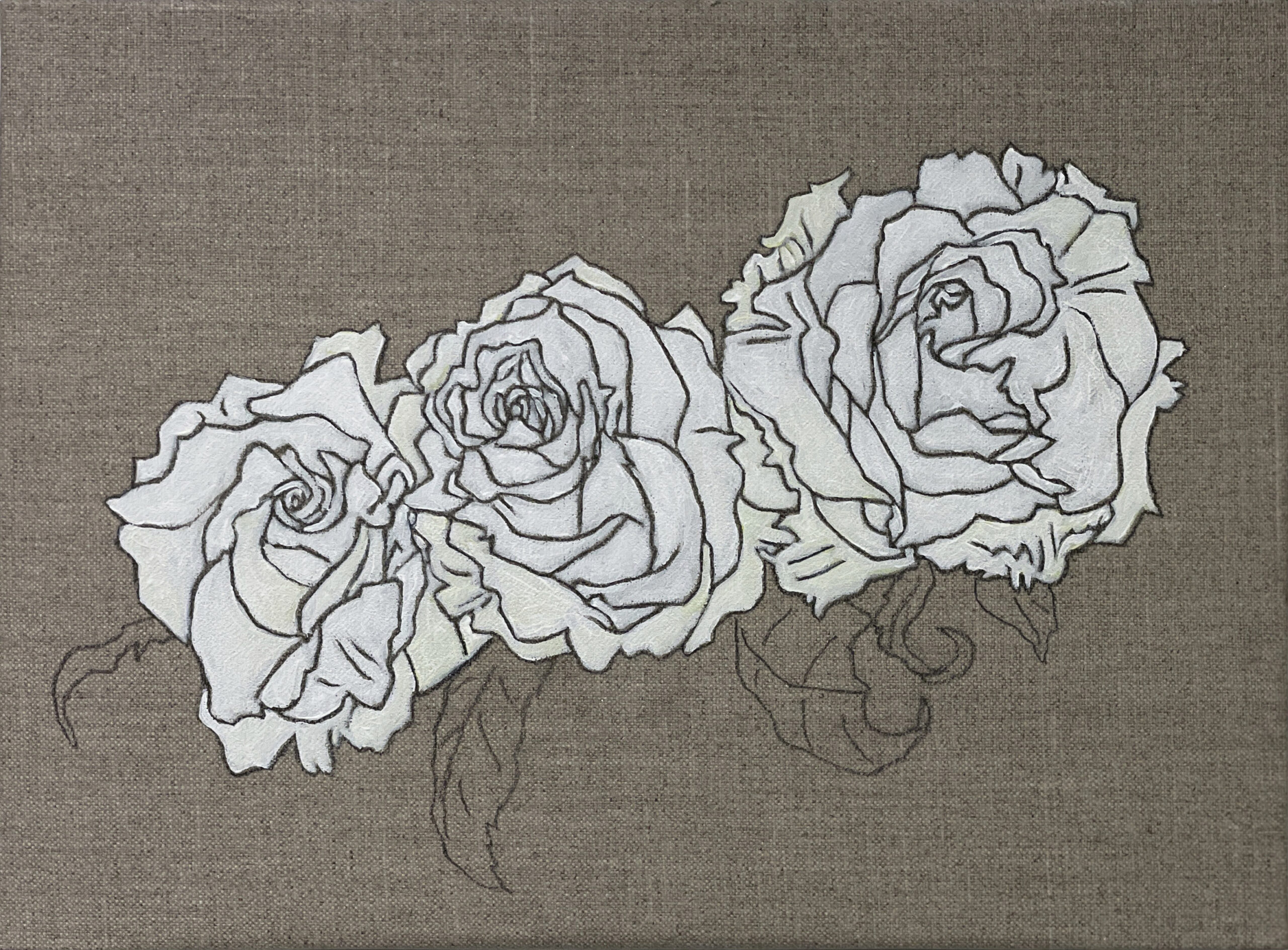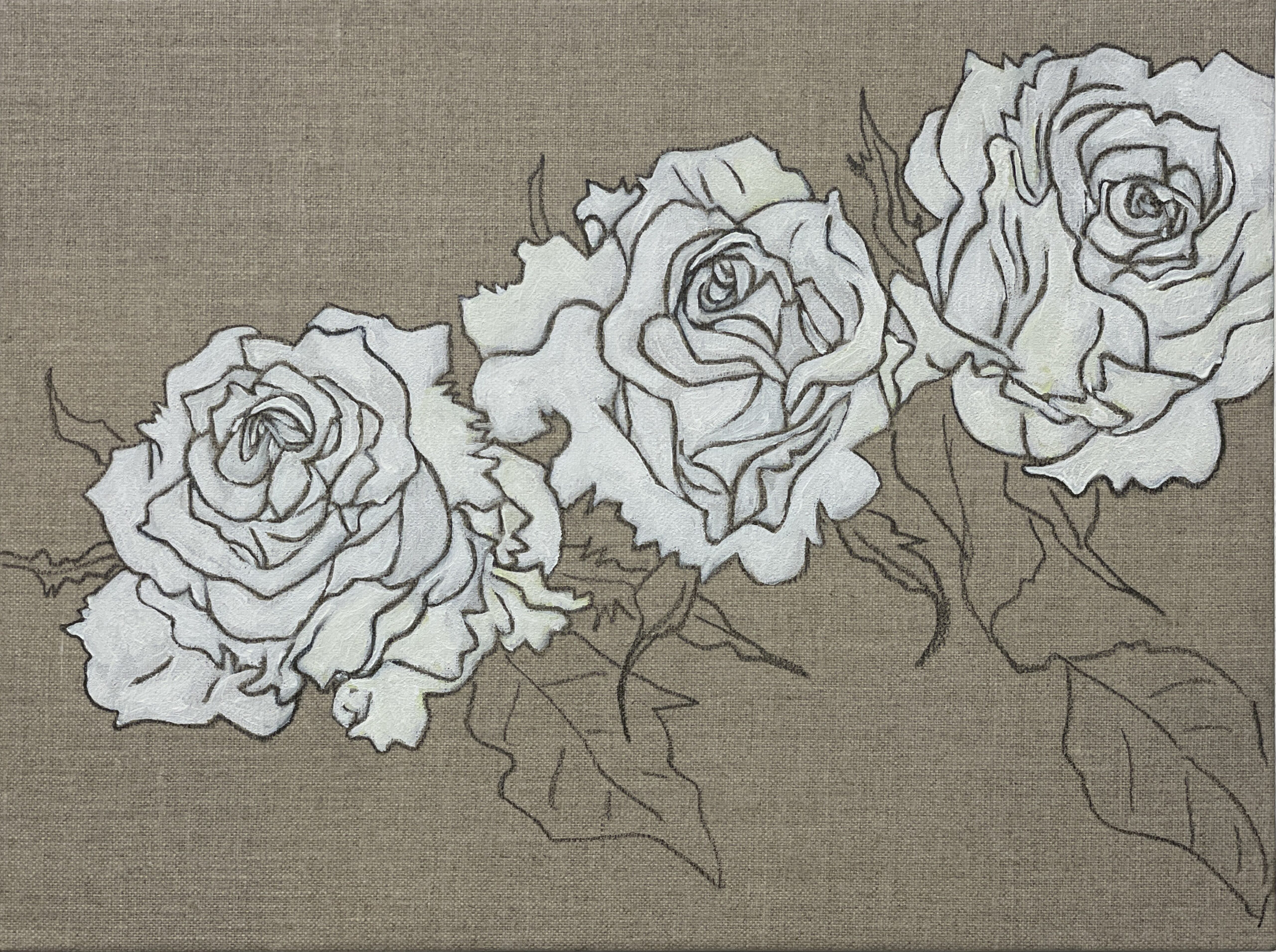 Roses, Oil and pencil on linen, 12 x 16 inches, 2025