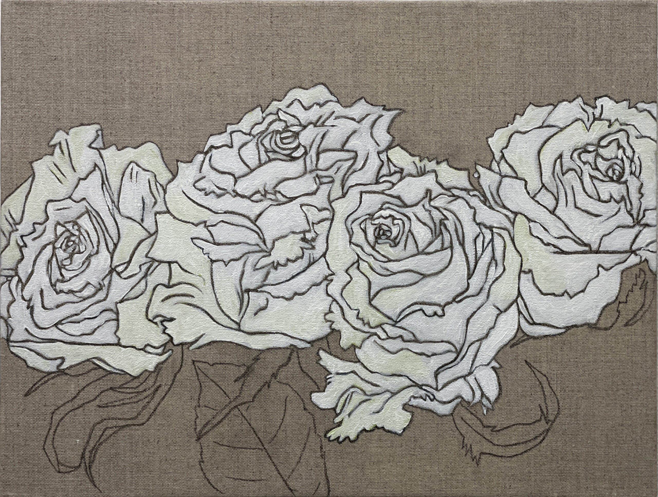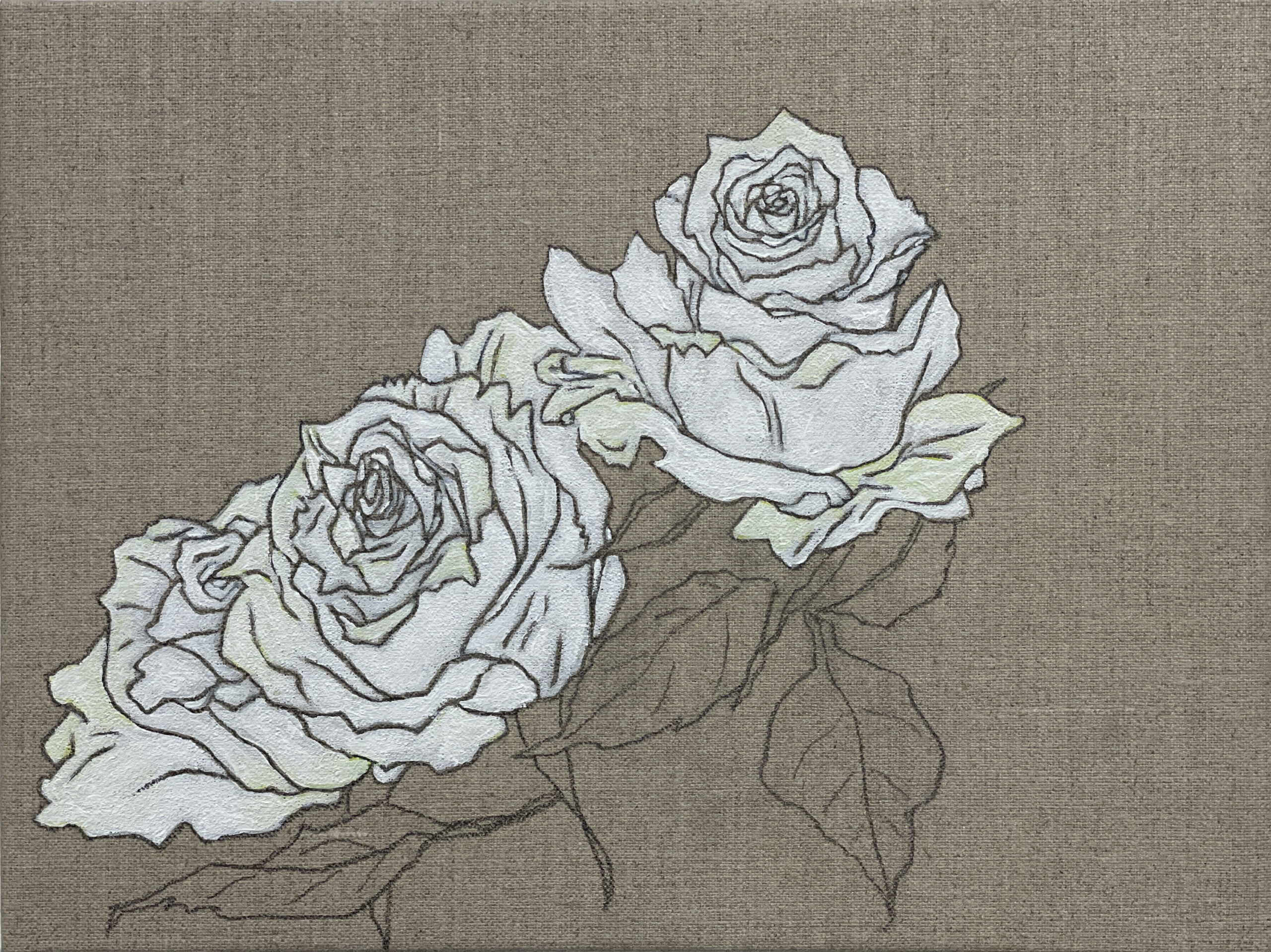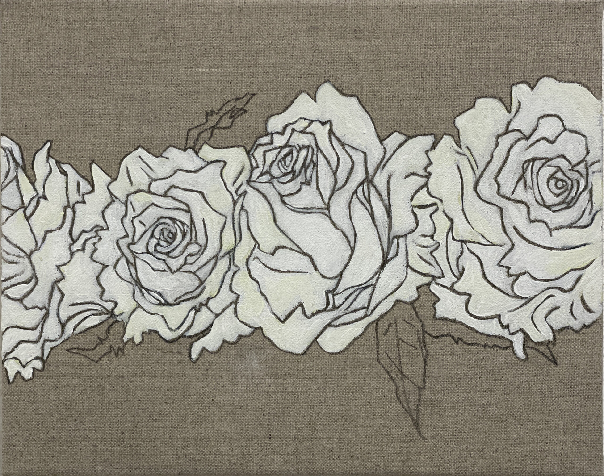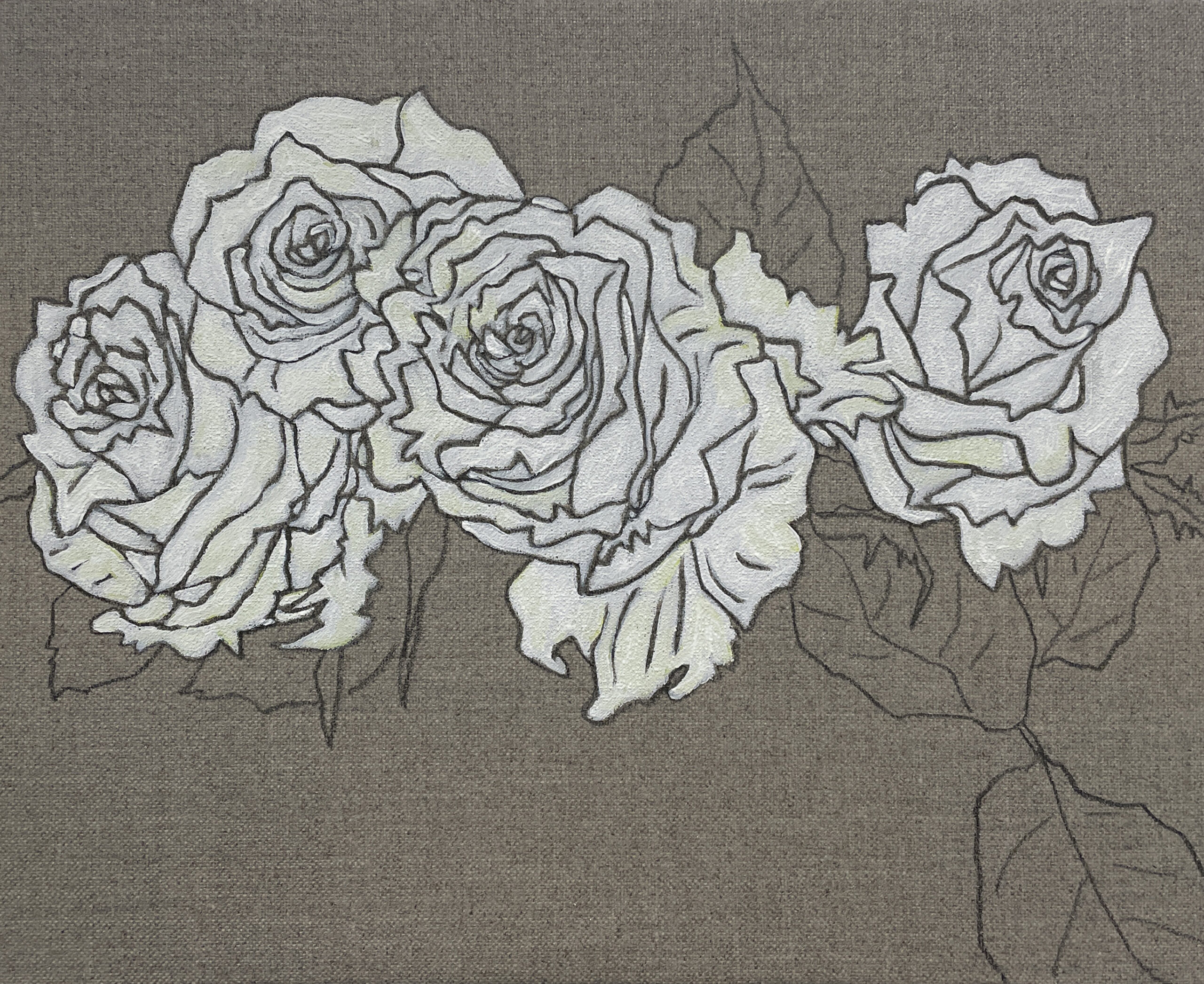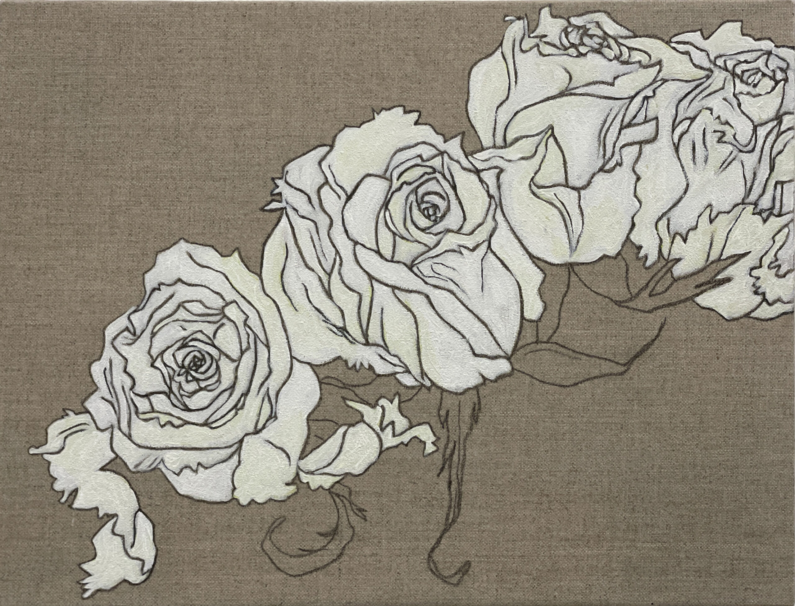 Roses, Oil and pencil on linen, 12 x 16 inches, 2025