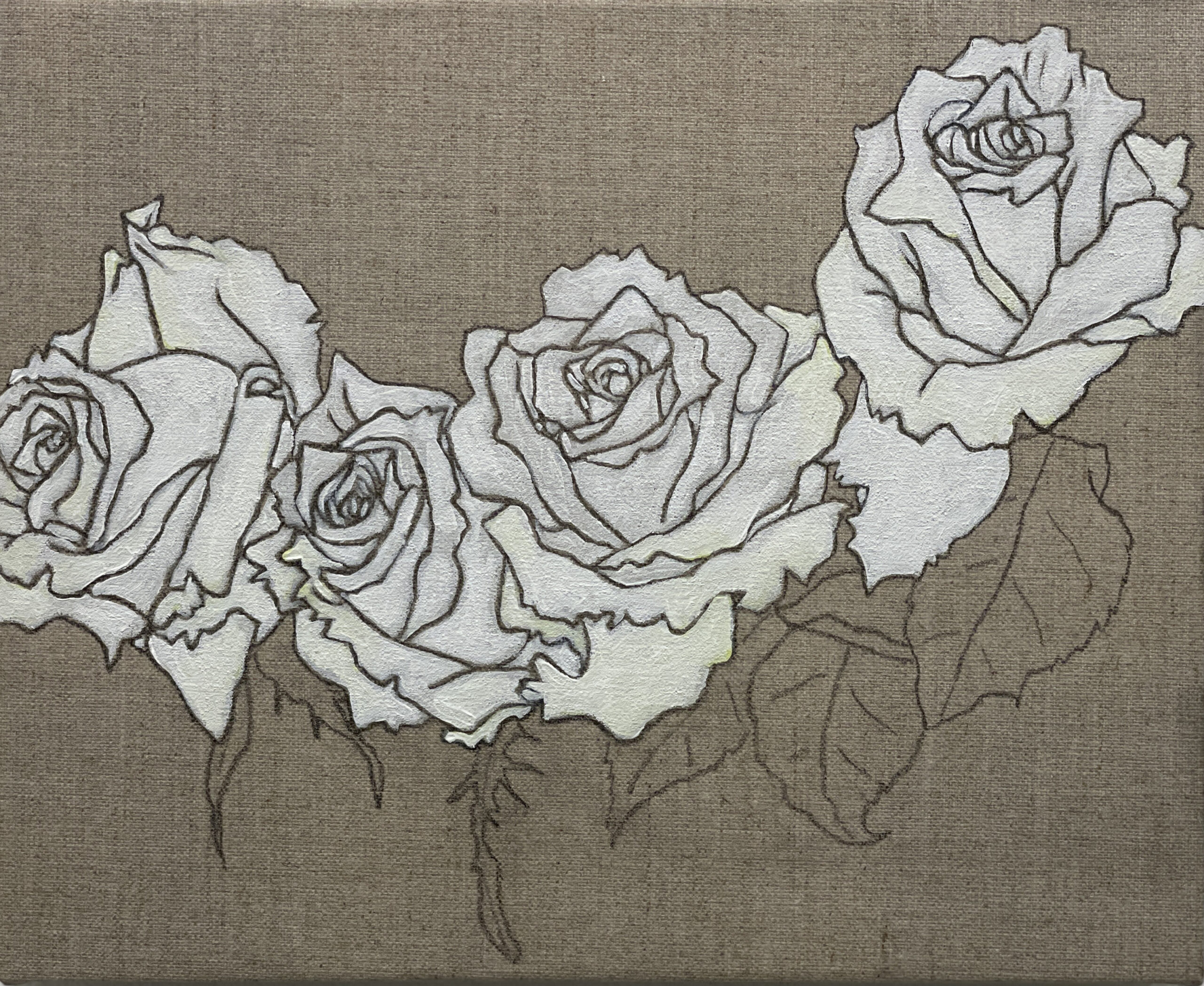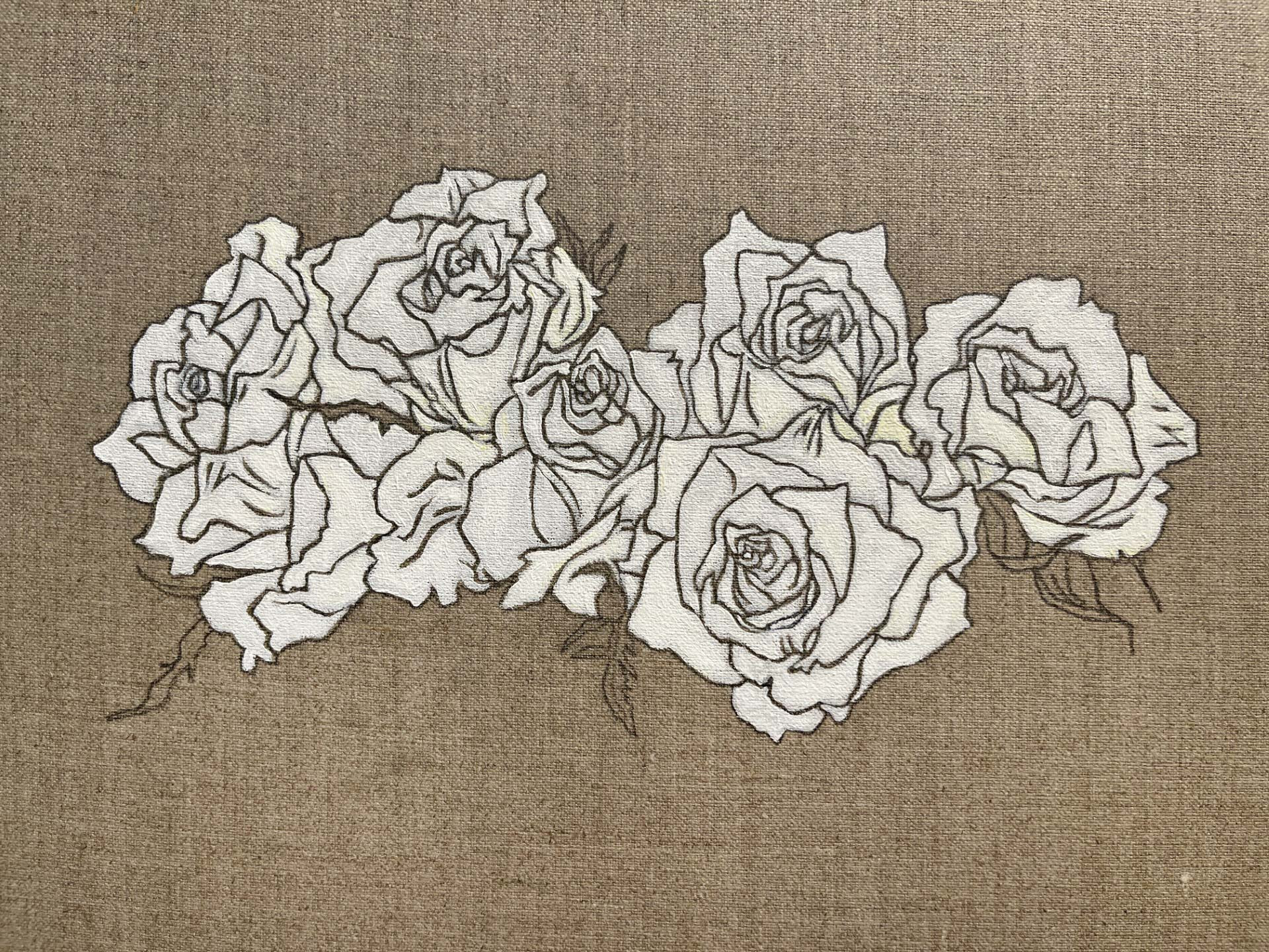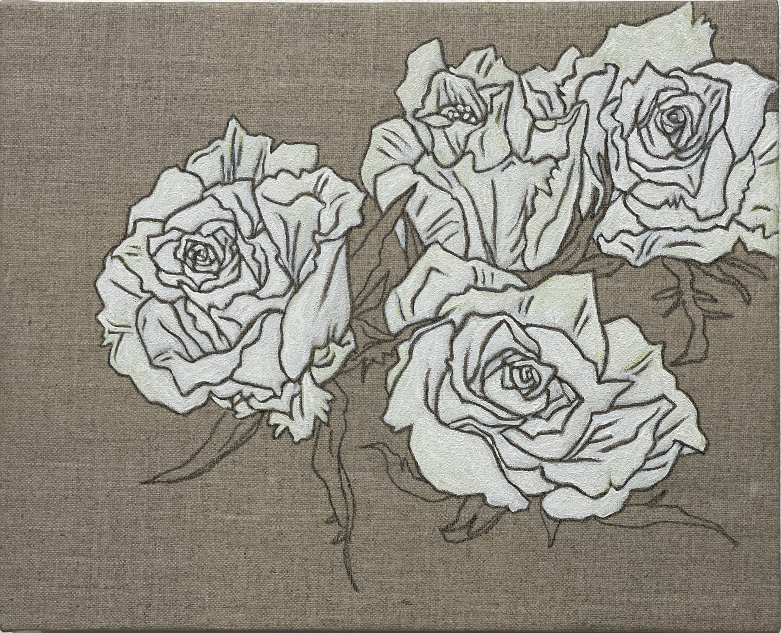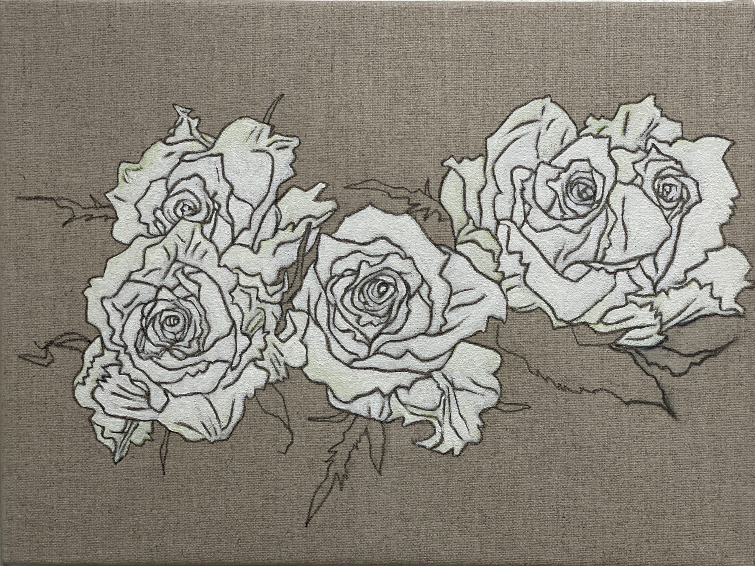 Roses, Oil and pencil on linen, 12 x 16 inches, 2025