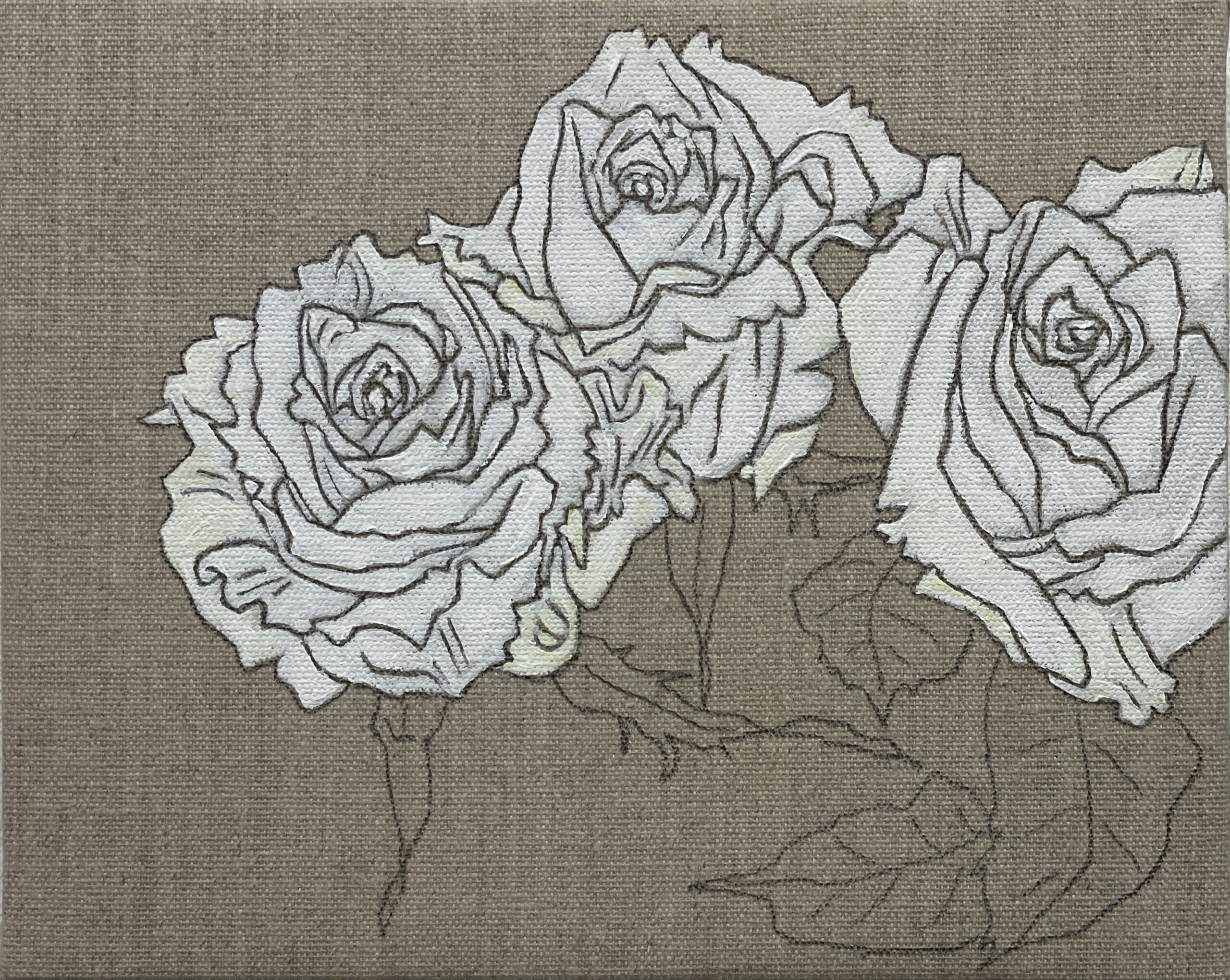 Roses, Oil and pencil on linen, 8 x 10 inches, 2025