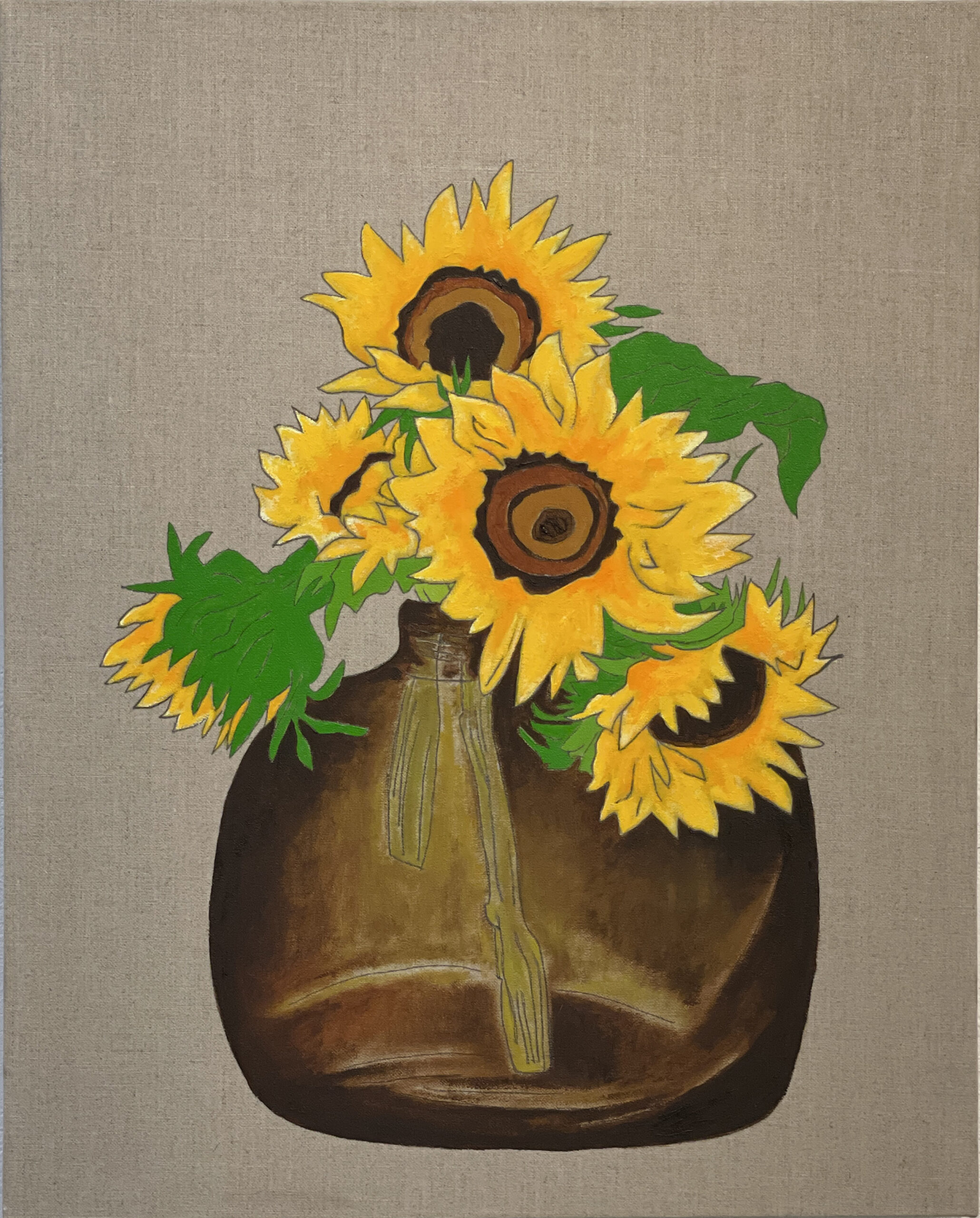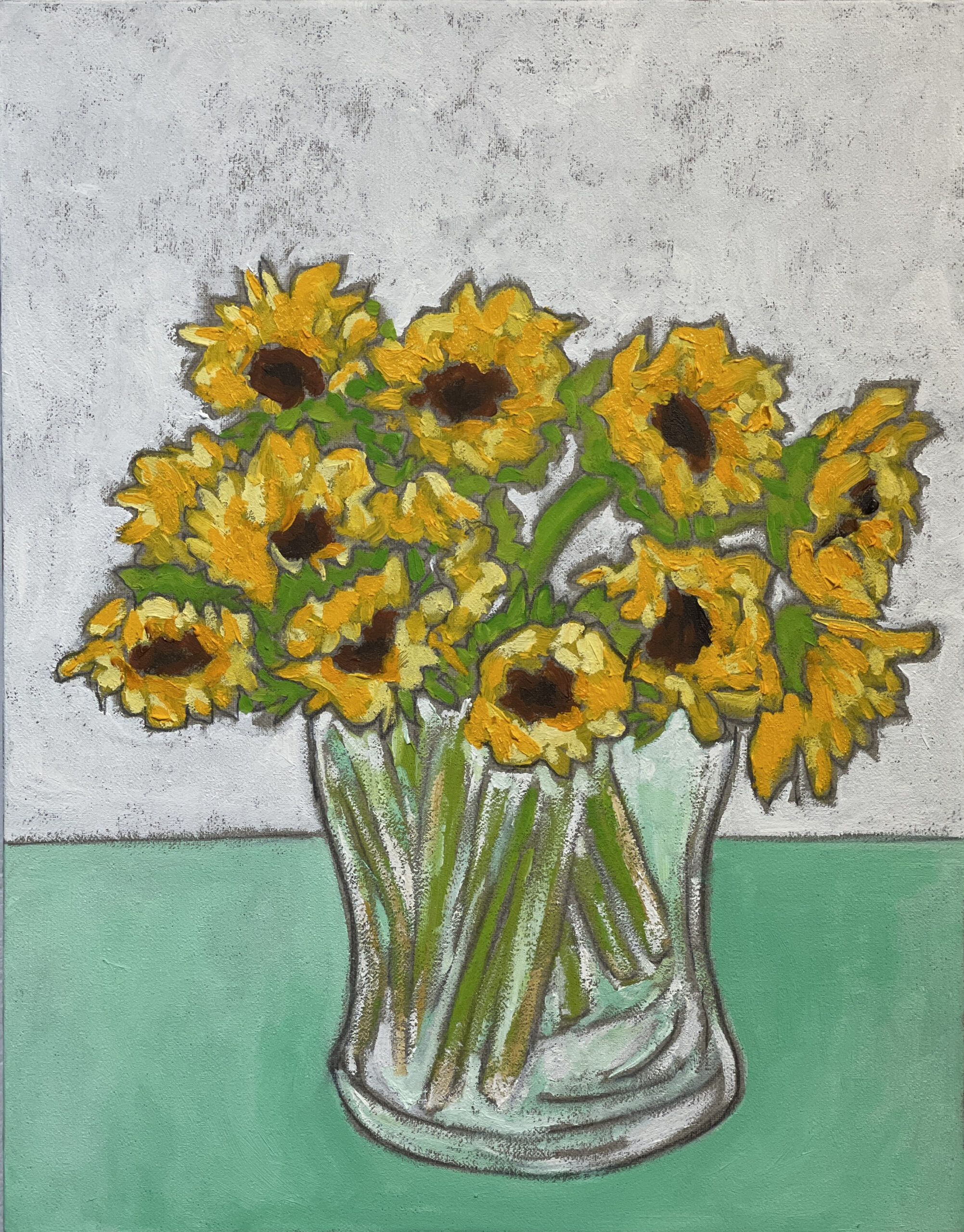 Sunflowers, Oil and pencil on linen, 20 x 16 inches, 2025