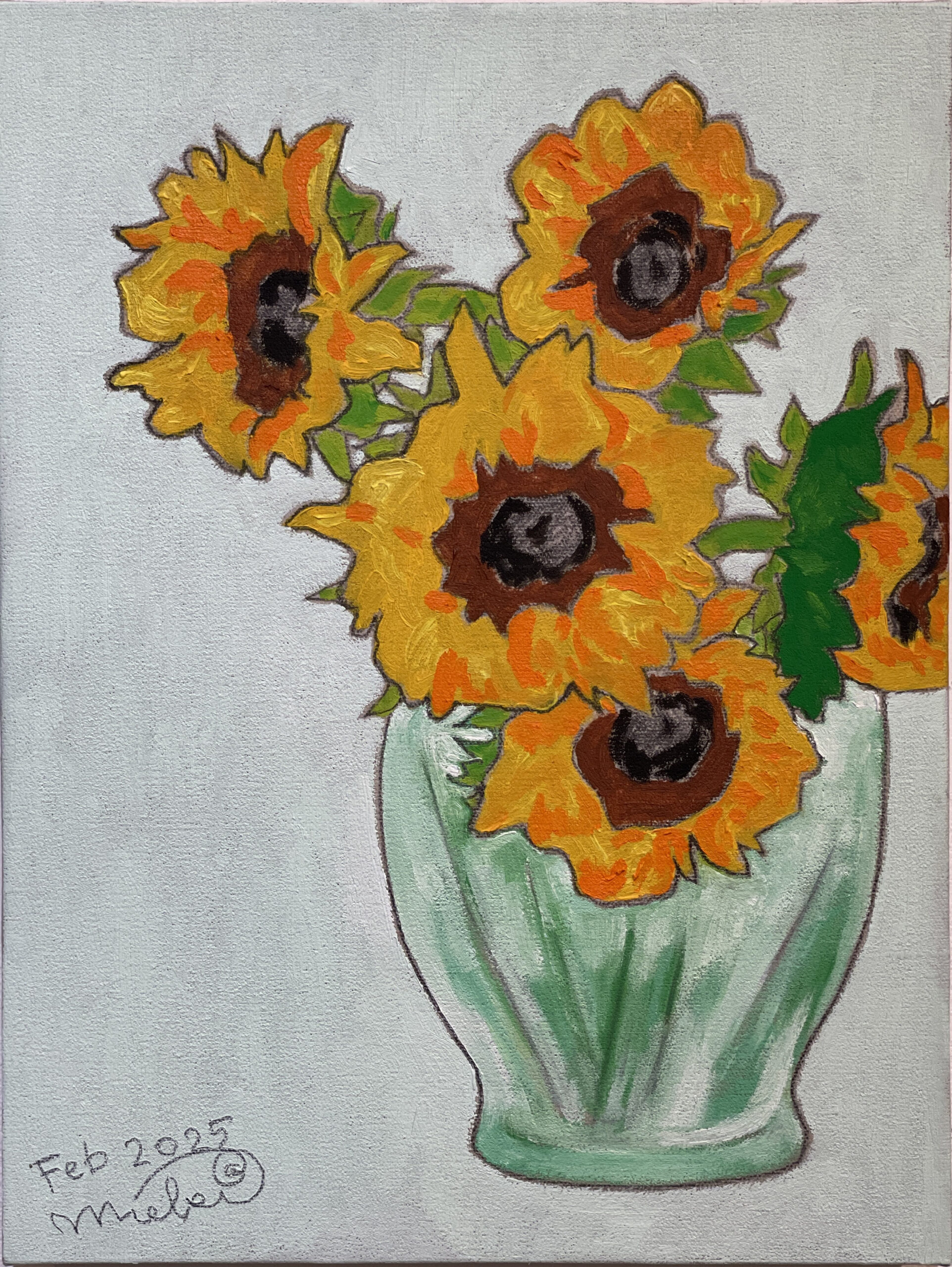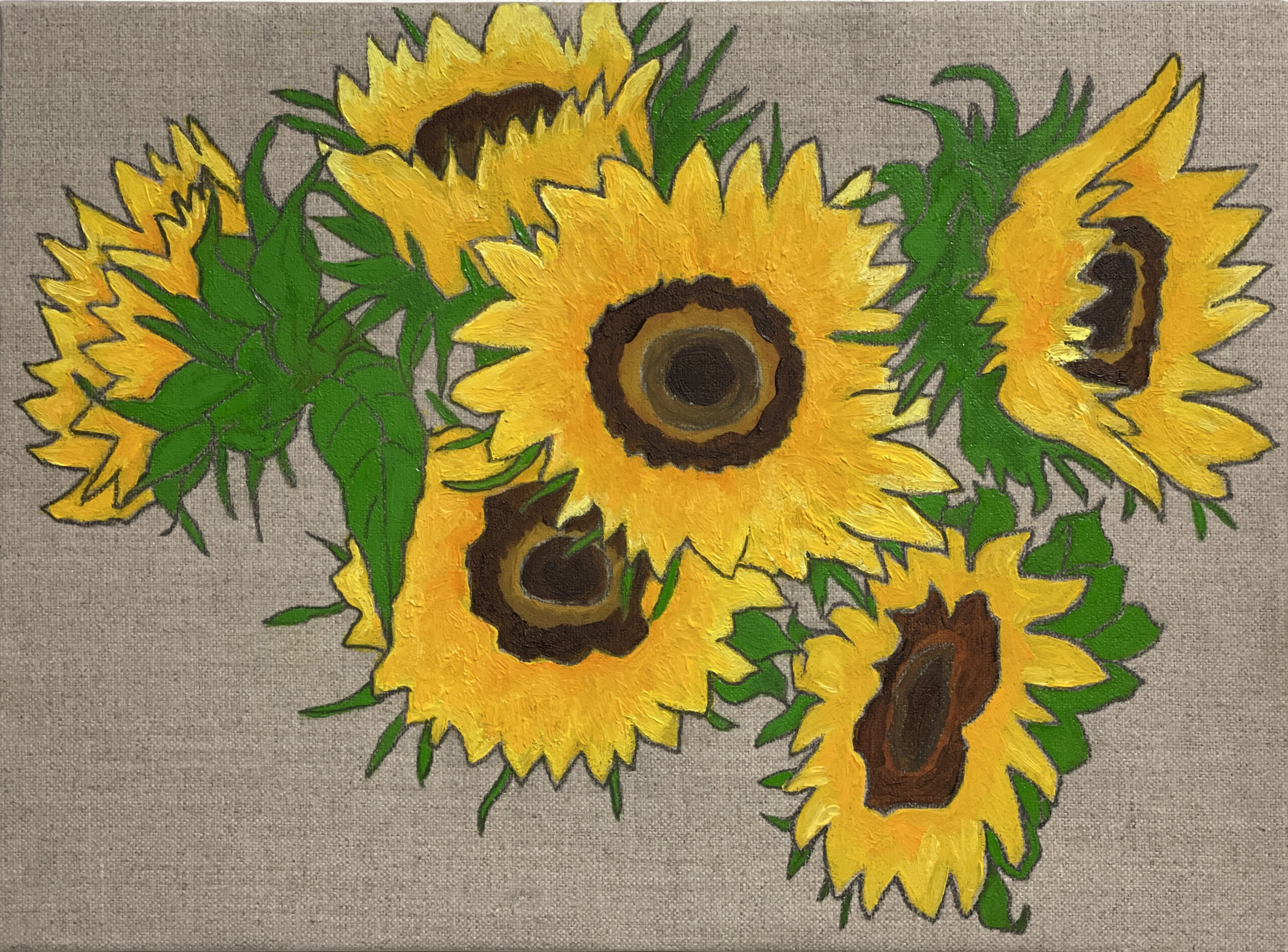 Sunflowers, Oil and pencil on linen, 16 x 12 inches, 2025