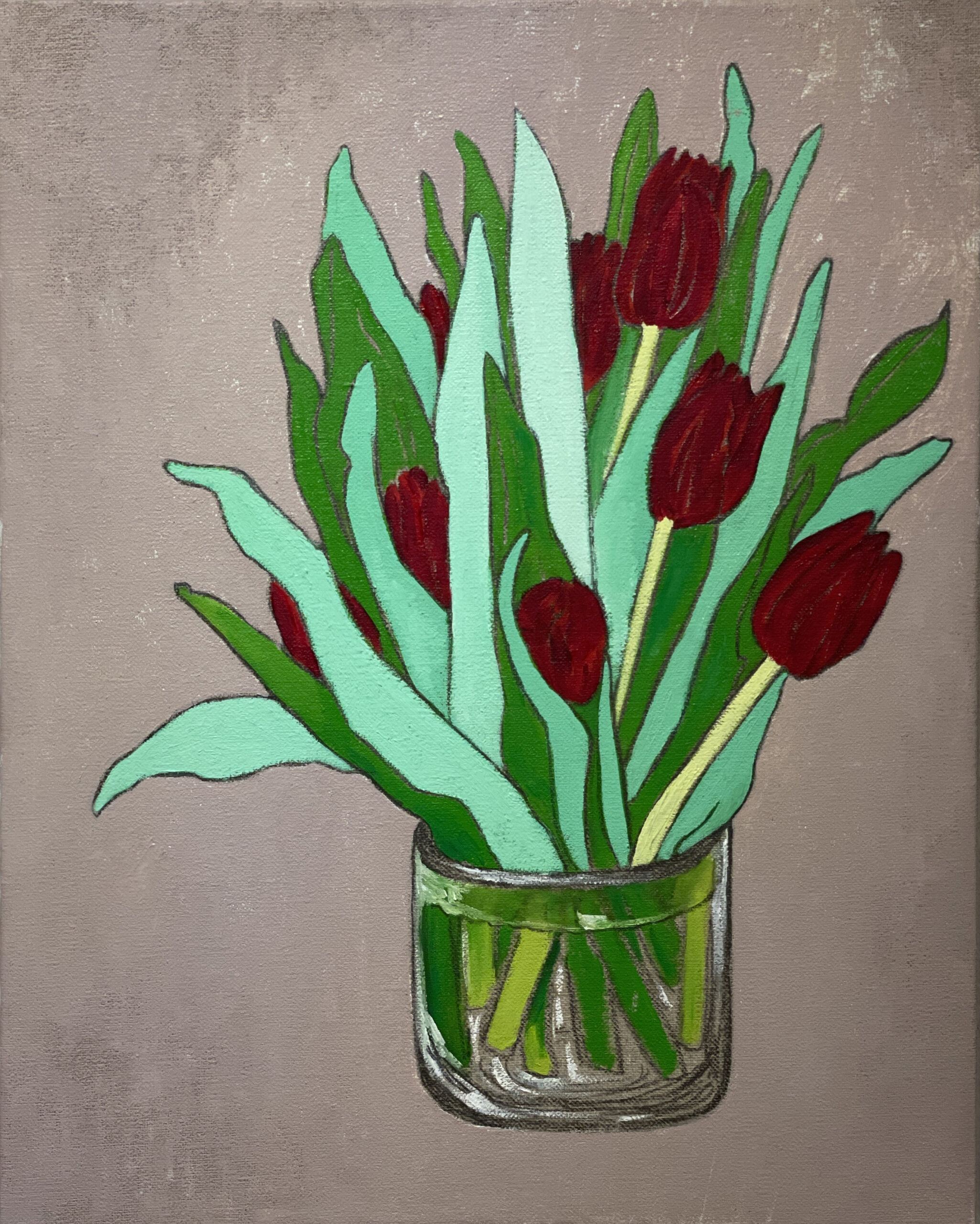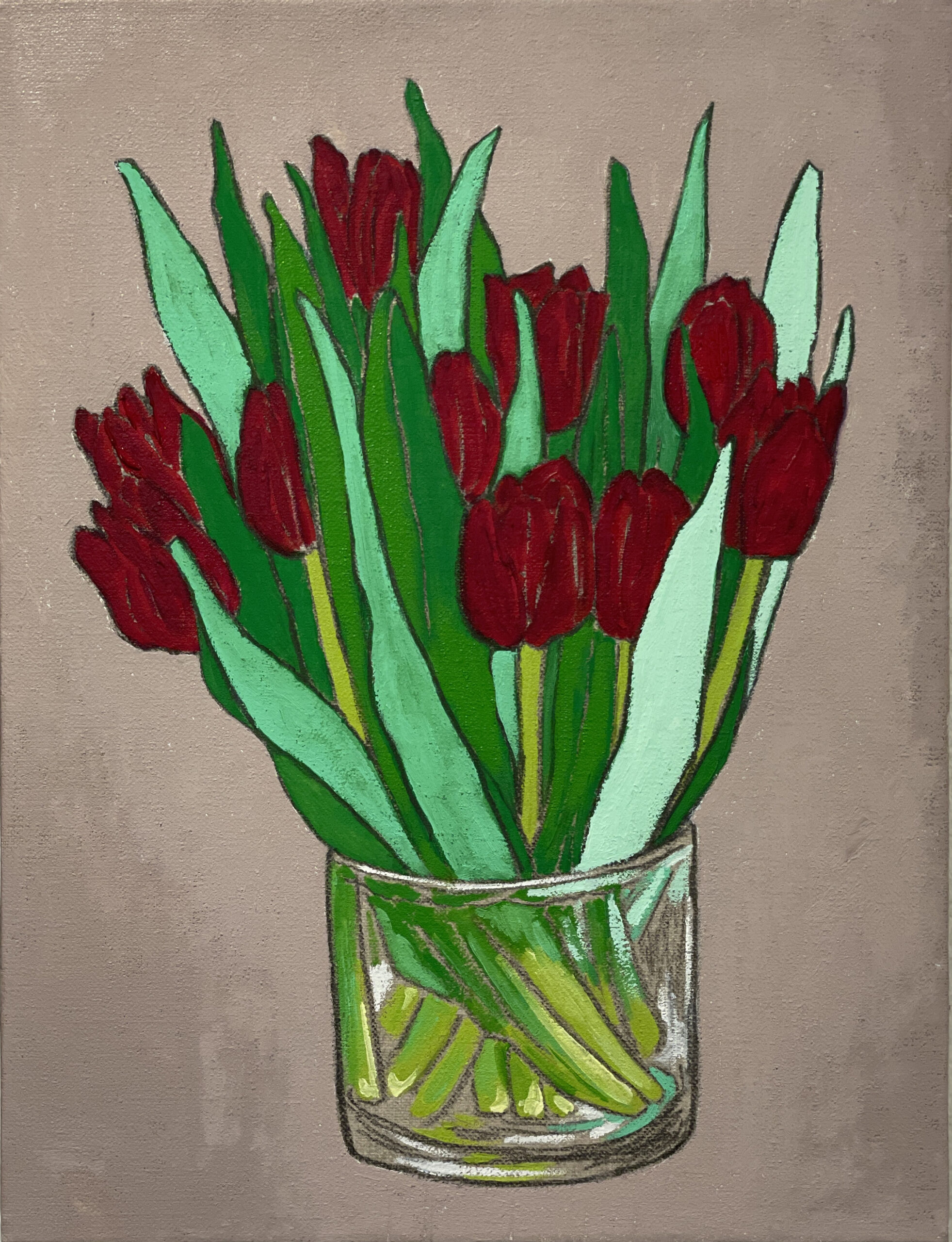 Tulips, Oil and pencil on linen, 14 x 11 inches, 2025
