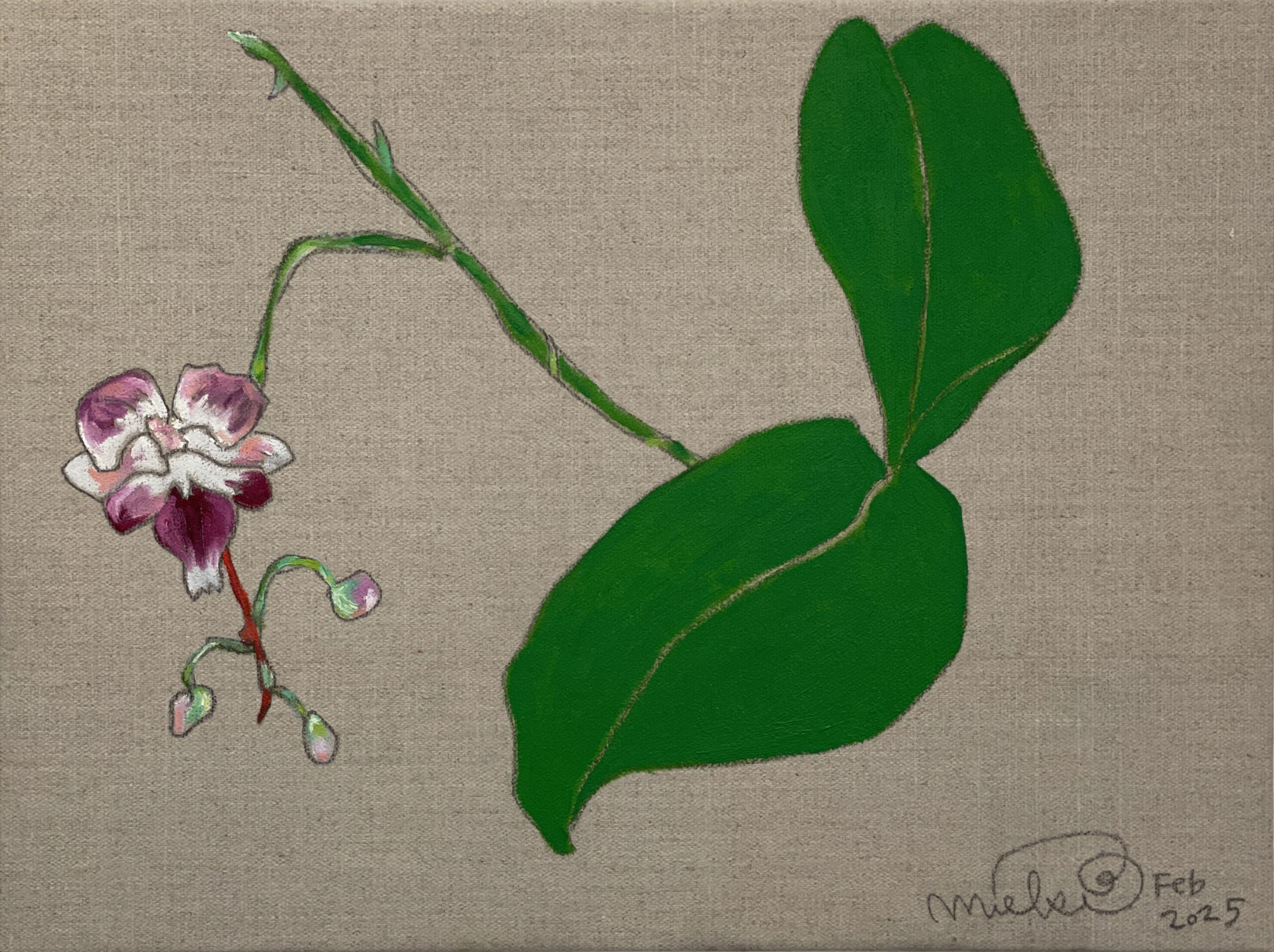 Orchid, Oil and pencil on linen, 12 x 16 inches, 2025