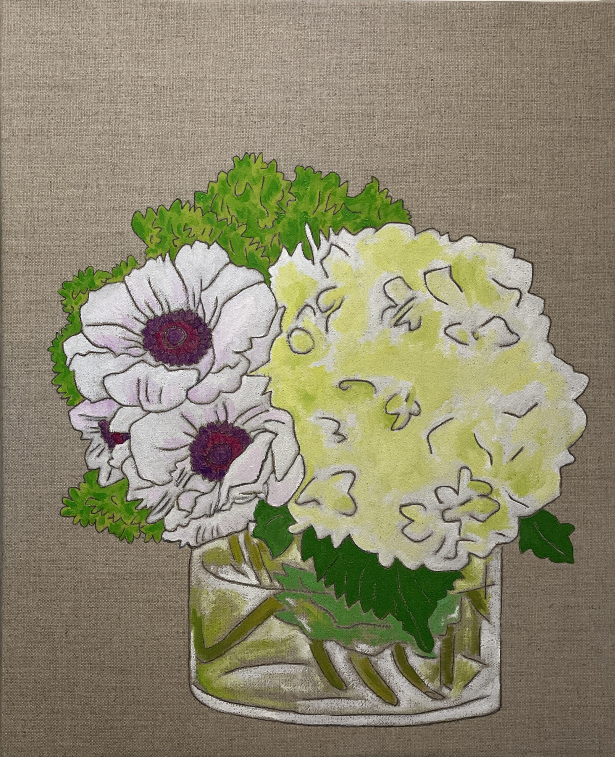 The bouquet Kozue gave me, Oil and pencil on linen, 14 x 11 inches, 2025