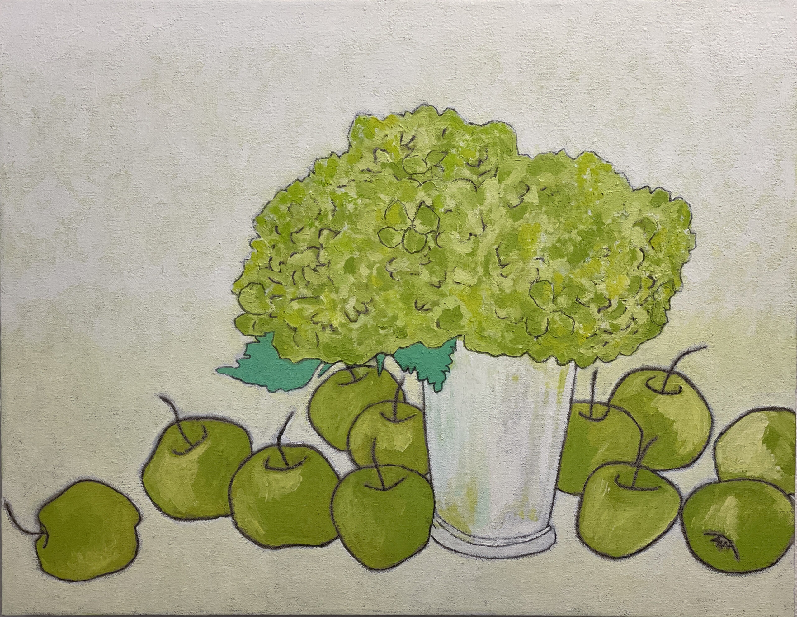 Green Friends, Oil and pencil on linen, 14 x 18 inches, 2025