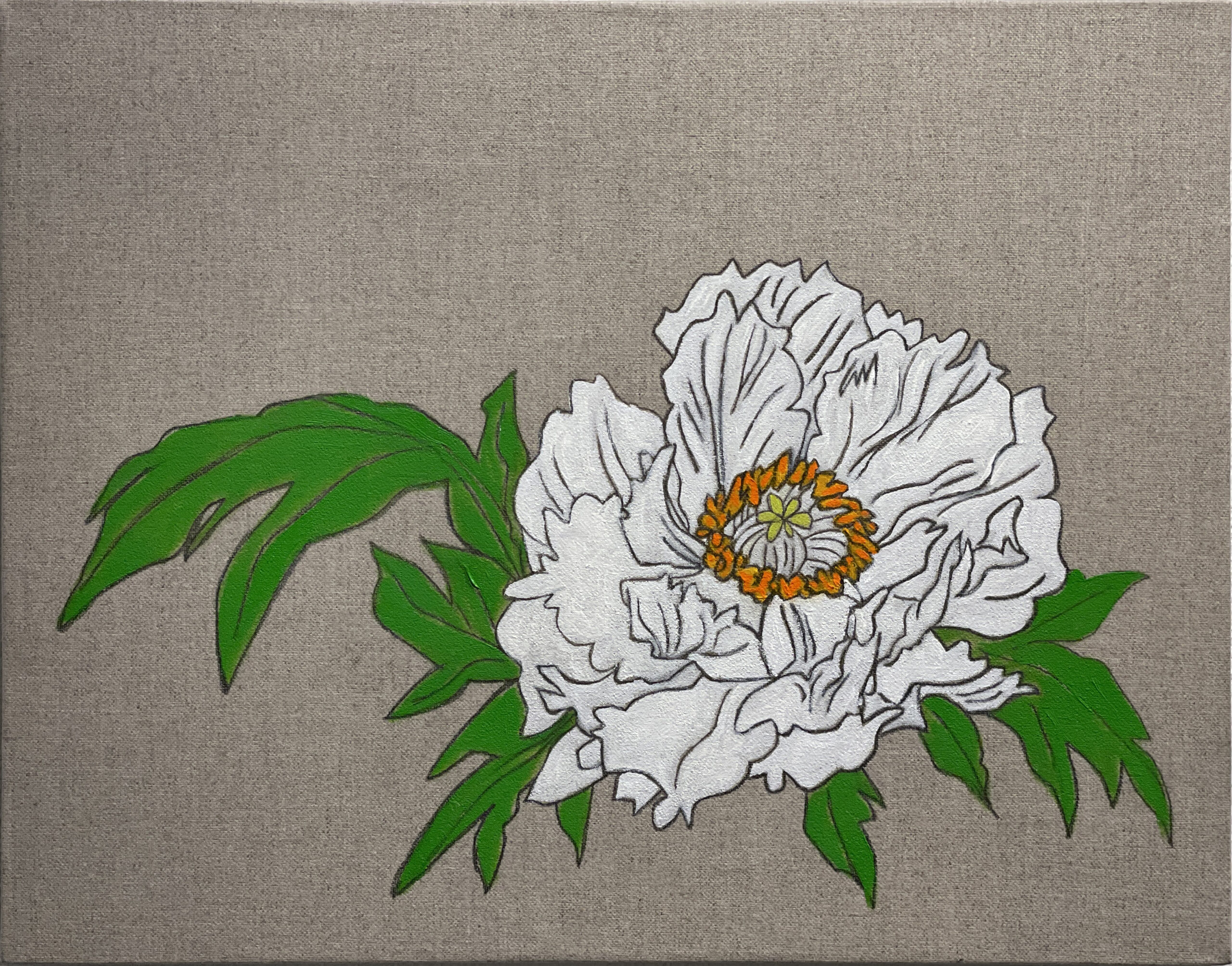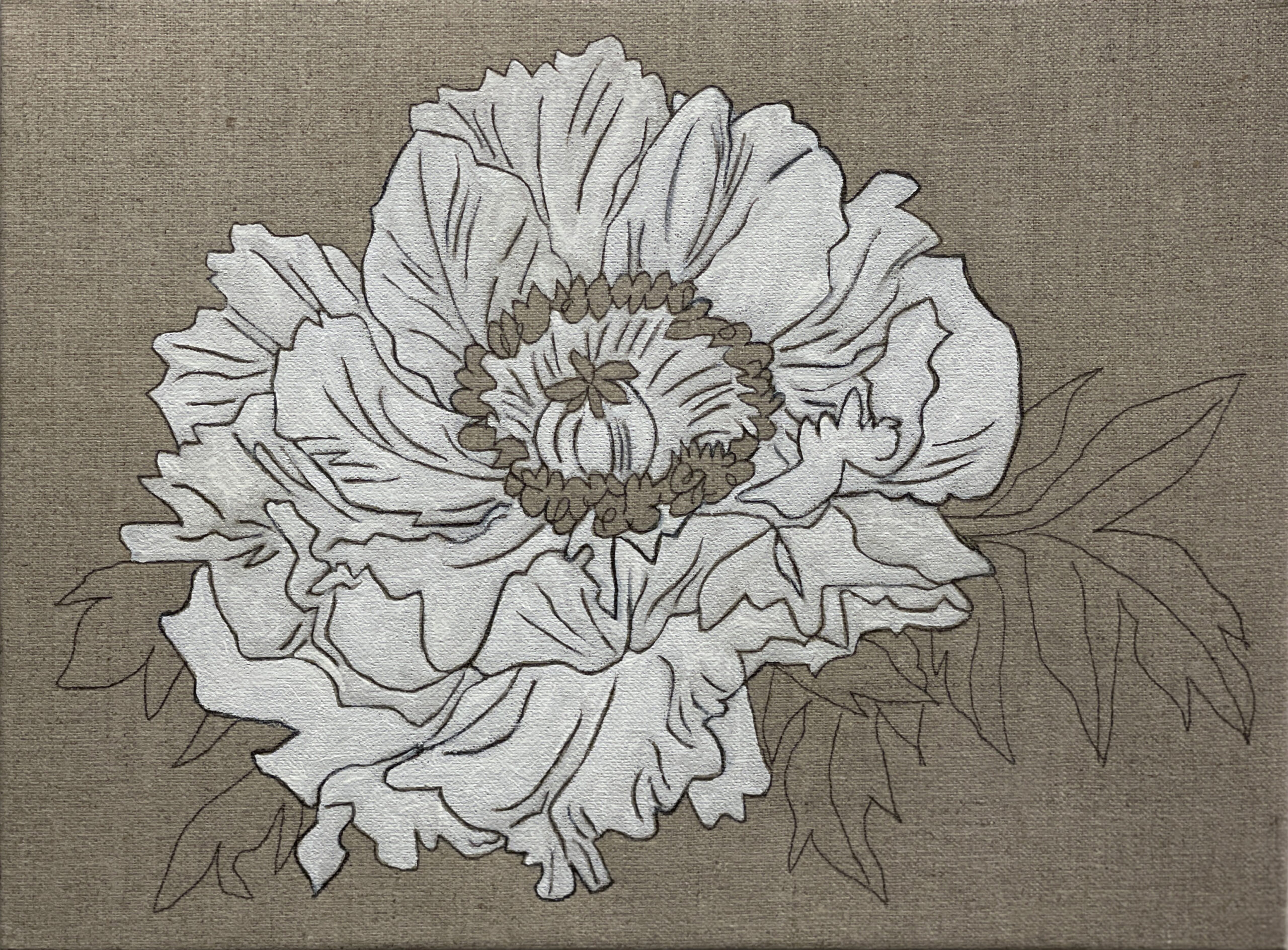 Peony, Oil and pencil on linen, 11 x 14 inches, 2025