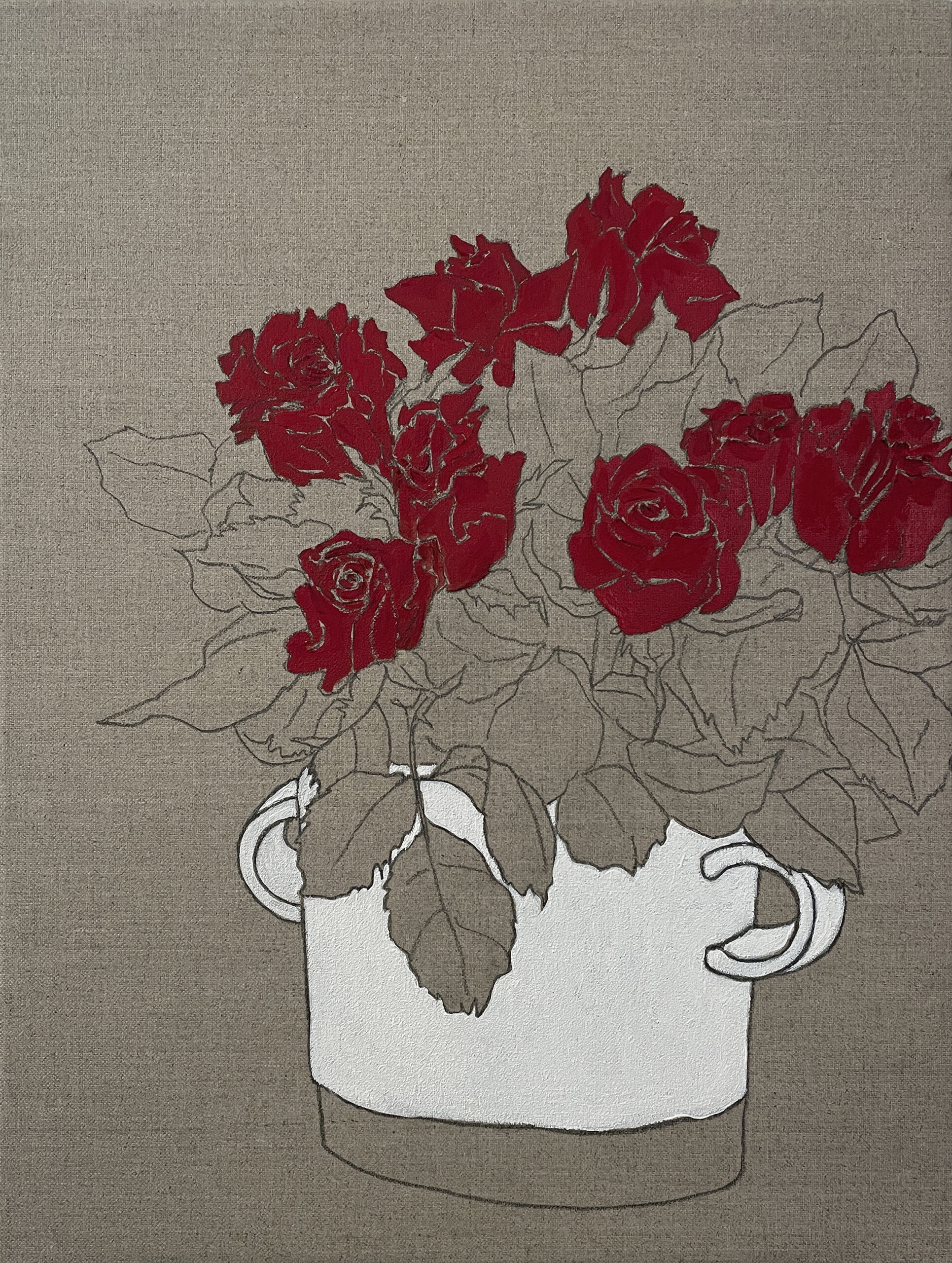 Red Roses, Oil and pencil on linen, 16 x 12 inches, 2025