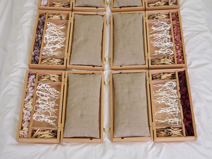 Flower petals and a heart, 2023, wire, flower petals in a jar